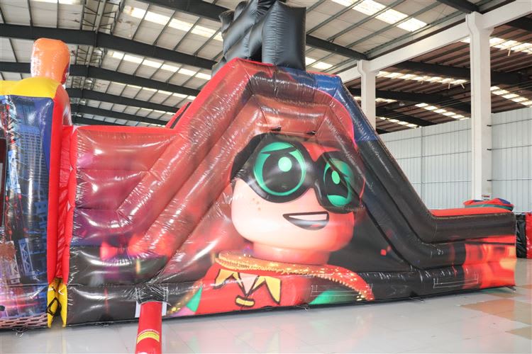 Featuring iconic Lego superhero characters and vibrant digital artwork, our Lego Superhero Obstacle Course brings the world of superheroes to life! 🌟 Imagine racing through the bish bash zone, maneuvering through challenging obstacles, and sliding down the thrilling 8ft slide surrounded by your favorite superheroes.