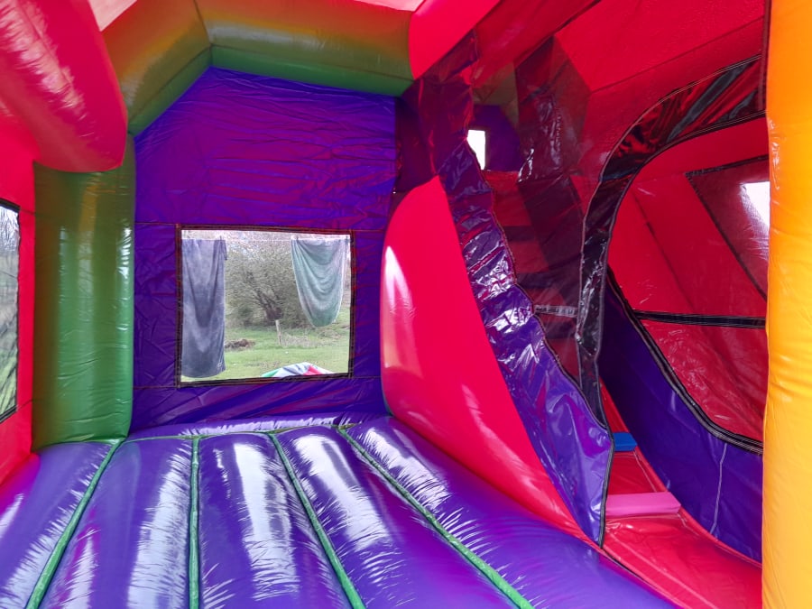 This large bouncy castle with a 7-foot internal slide is a brilliant all-round inflatable, offering plenty of space to bounce along with the added excitement of a built-in slide. Its simple, colourful design makes it suitable for a wide range of events and age groups, without being tied to any specific theme.