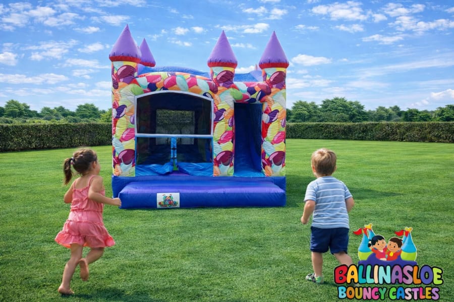 At Ballinasloe Bouncy Castles, we are delighted to serve customers in Ballinasloe, Athlone, Moate, Loughrea, Portumna, Banagher, Mountbellew, Ballygar, and Cloghan. Our prompt and reliable delivery service ensures that your Candy Castle with Slide will arrive on time, ready for a weekend filled with laughter and joy.