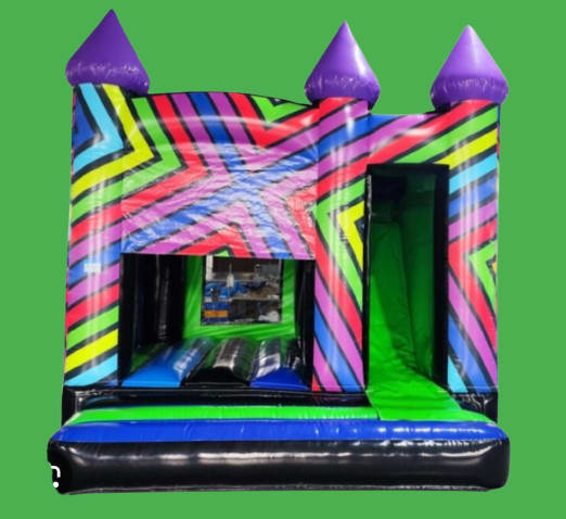 Looking for a colourful bouncy castle hire that kids will love and parents will find great value? Our Neon Castle is the ultimate choice! With its vibrant multi-colour design and a built-in six-foot slide, this inflatable guarantees hours of fun at any party or event.