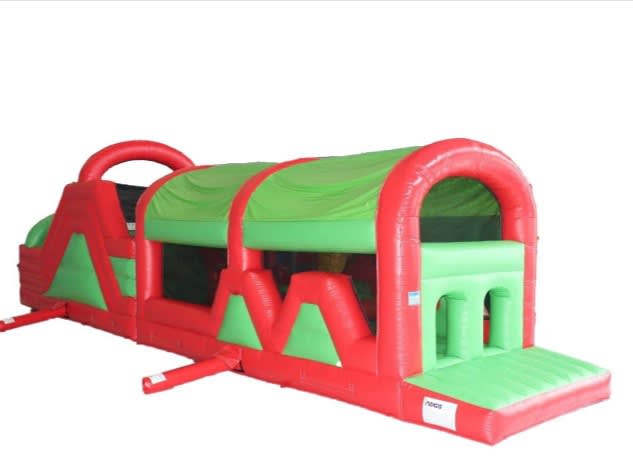 Make your event a memorable one with our 45ft Adrenaline Obstacle Course with Slide. Contact us today to book this thrilling attraction for your next celebration! 🎪✨