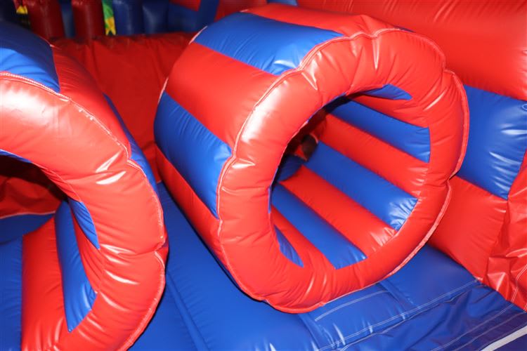 🏁 Get ready for an adrenaline-pumping race with the 40ft Eliminator obstacle course! Featuring an 8ft slide, multiple obstacles, and vibrant blue and red colors, this inflatable obstacle course is perfect for all ages and skill levels. 🌈